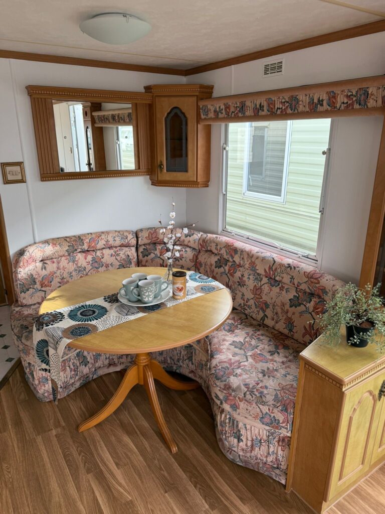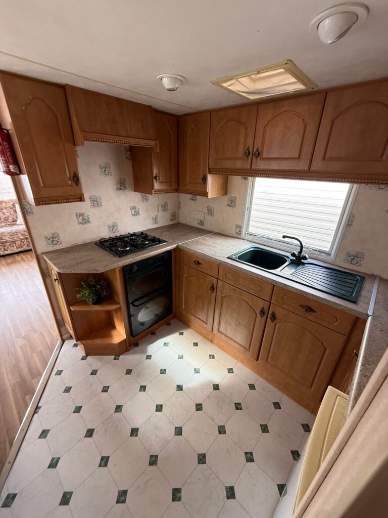 Mobil home de la marca Willerby con unas medidas de 10 x 3´80 m 3 dormitorios, cocina, cuarto de baño y salón comedor.