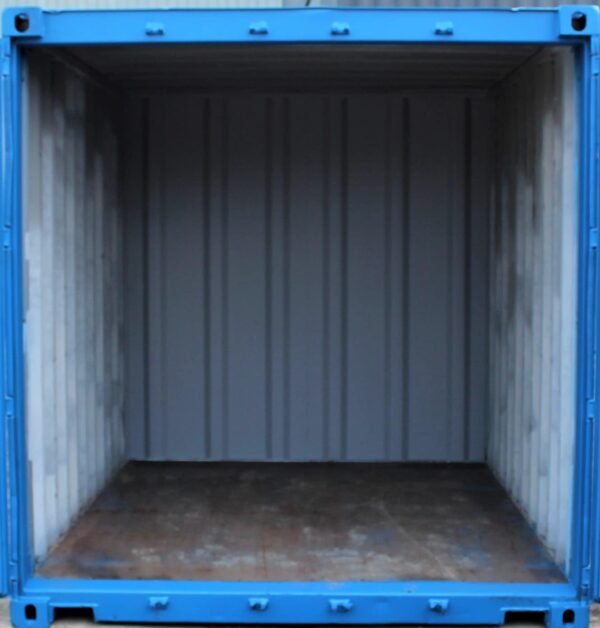 DescripciónContenedor de envío nuevo de 10 pies azul Longitud exterior: 2,99 m 10 pies Altura exterior: 2,59 m 8 pies 6 pulgadas Ancho exterior: 2,44 m 8 pies Longitud interna: 2,84 m 9 pies 4 pulgadas