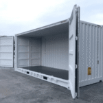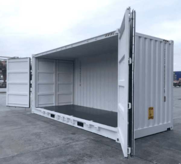 DescripciónNuevo contenedor High Cube de 20 pies con laterales abiertos en gris claro. Acceso lateral completo, hermético al viento y al agua, ideal para un almacenamiento seguro y flexible, y un uso modular.
